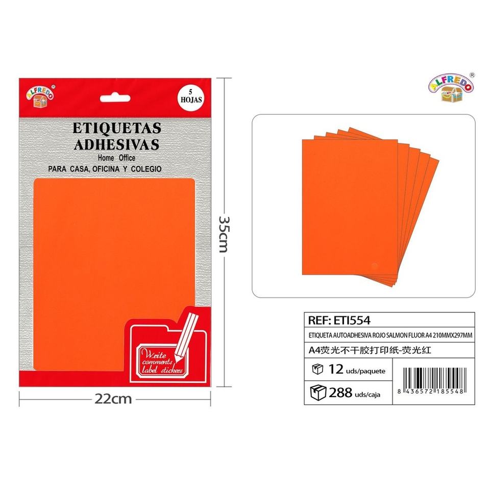 Neon salmon red self-adhesive label A4 (48x25mm) 12.5x20 cm - Office labels