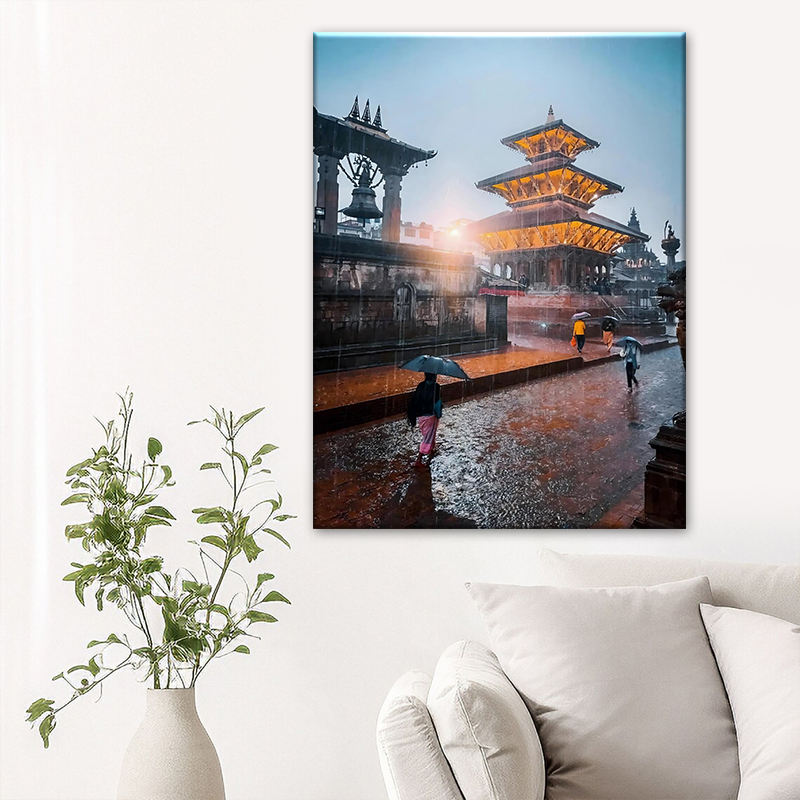 Stampe su Tela del Paesaggio del Nepal, Piazza del Durbar di Patan Durante la Pioggia, Bellezza del Nostro Patrimonio