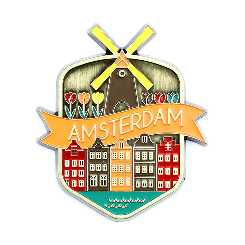 Netherlands Holland Amsterdam Windmill Tulip City Souvenirs Logo Metal Custom 3D Fridge Magnets