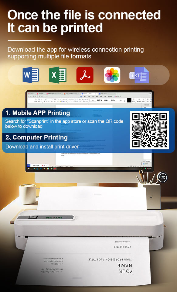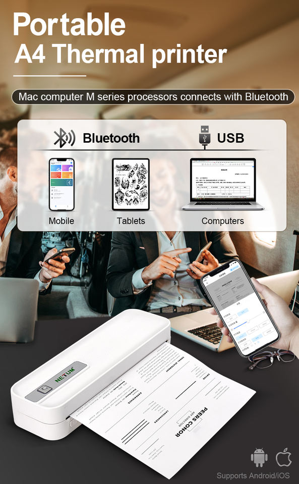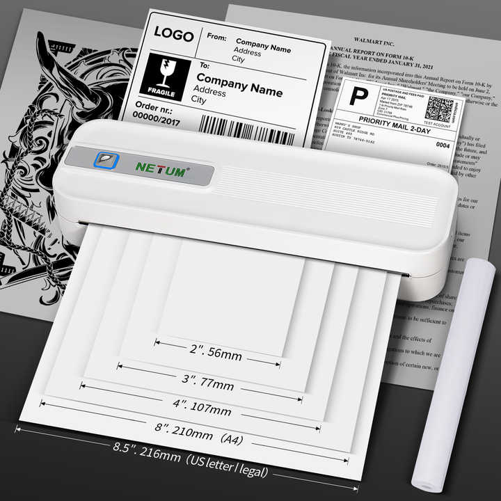 Stampante Portatile Ricaricabile Netum Mini A4 per Documenti, Connessione Bluetooth e Type-C, Disponibile in Blu