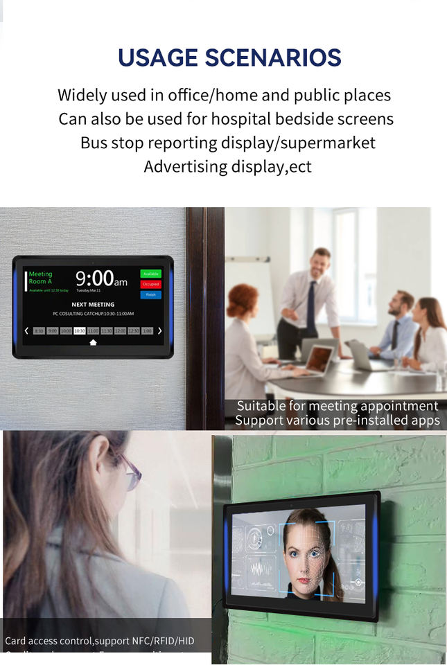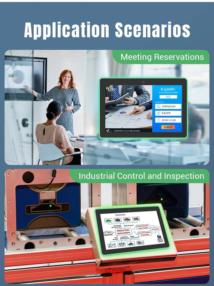 Nuovo Tablet Android da 10.1 Pollici con Schermo Touch, Processore Quad Core Rockchip, POE, NFC, Wi-Fi, RJ45, 4G, 3G, GSM, Luce LED per Prenotazione Sale Riunioni