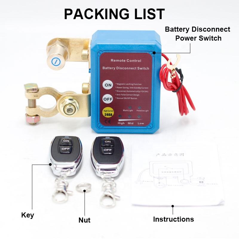 Nuovo Interruttore di Disconnessione Batteria 12V 240A con Telecomando per Spegnimento e Blocco di Emergenza per Auto e Camion