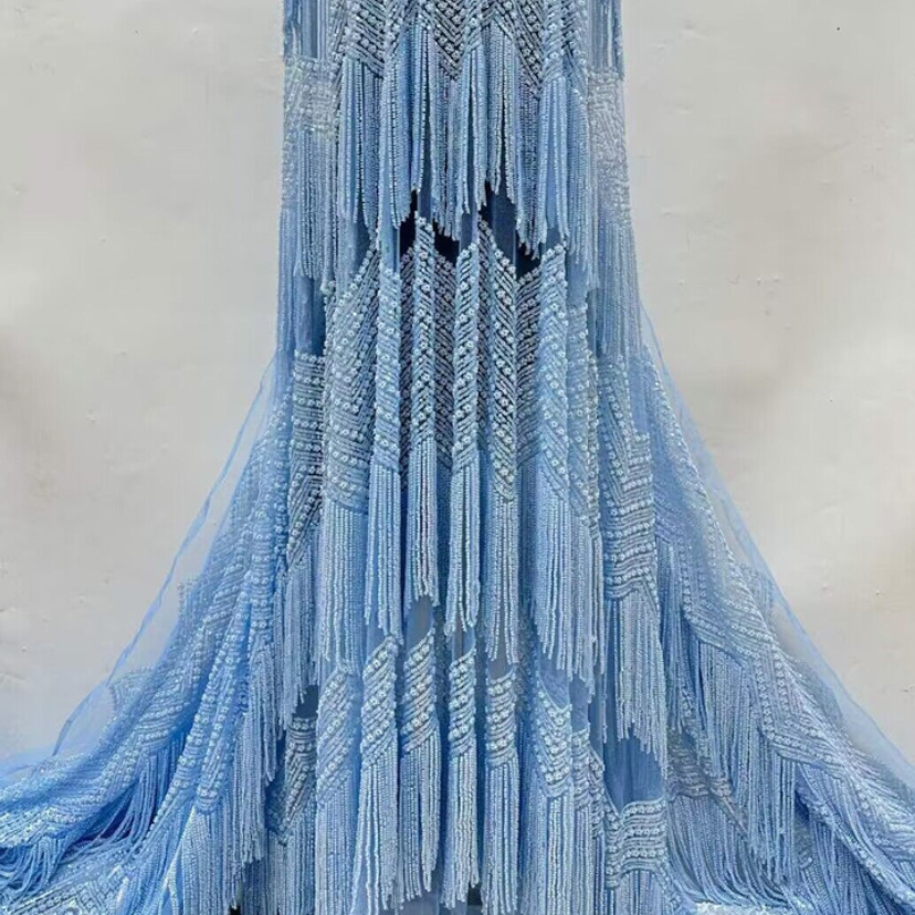 New 2024 Luxury Beading Tassel Fringe Lace Embroidered Beaded Tulle Fabric