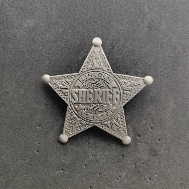 Nuova Idea di prodotti 2024 distintivo in metallo per sceriffi in rilievo 3D distintivo con stella in metallo placcato oro personalizzato