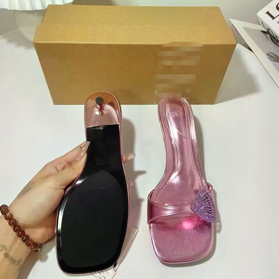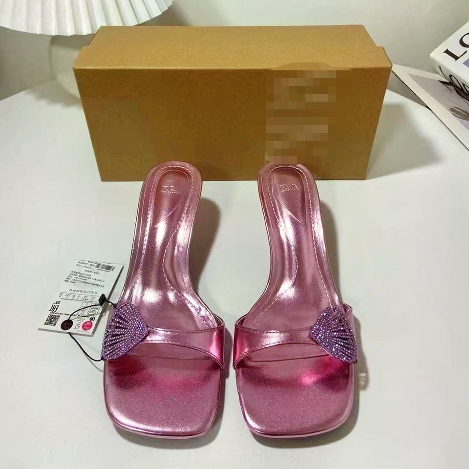 New 2025 French Style Summer Thin Heel Square Toe Rhinestone Strap Sea Pearl Buckle Block Heeled Sandals for Women