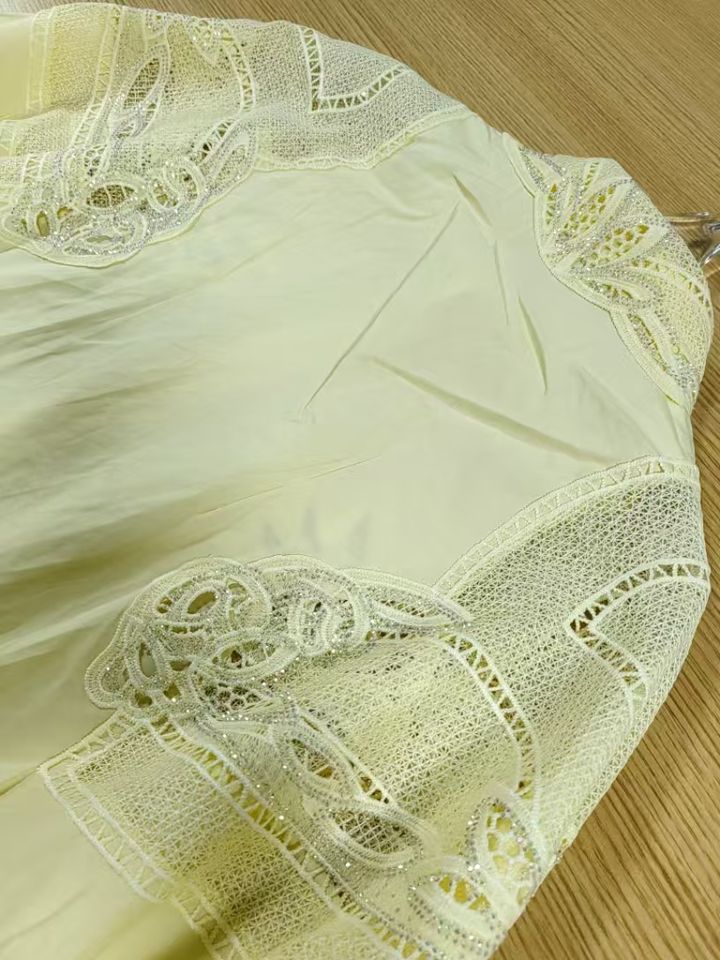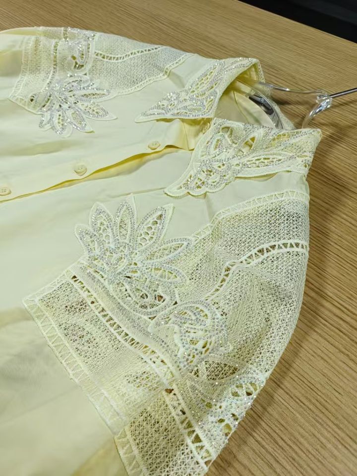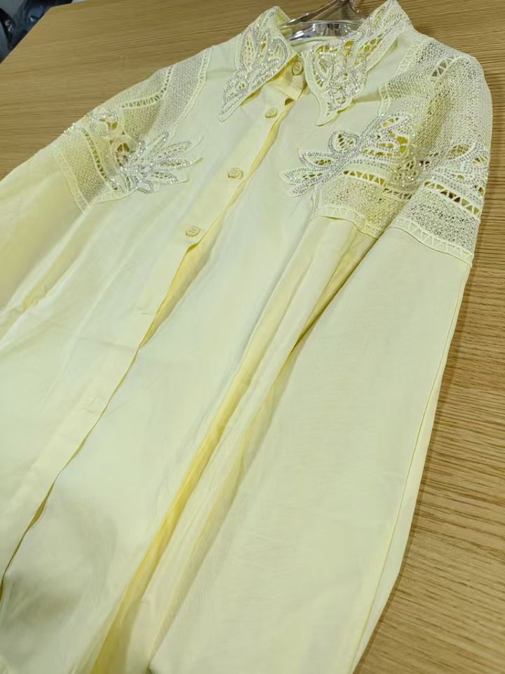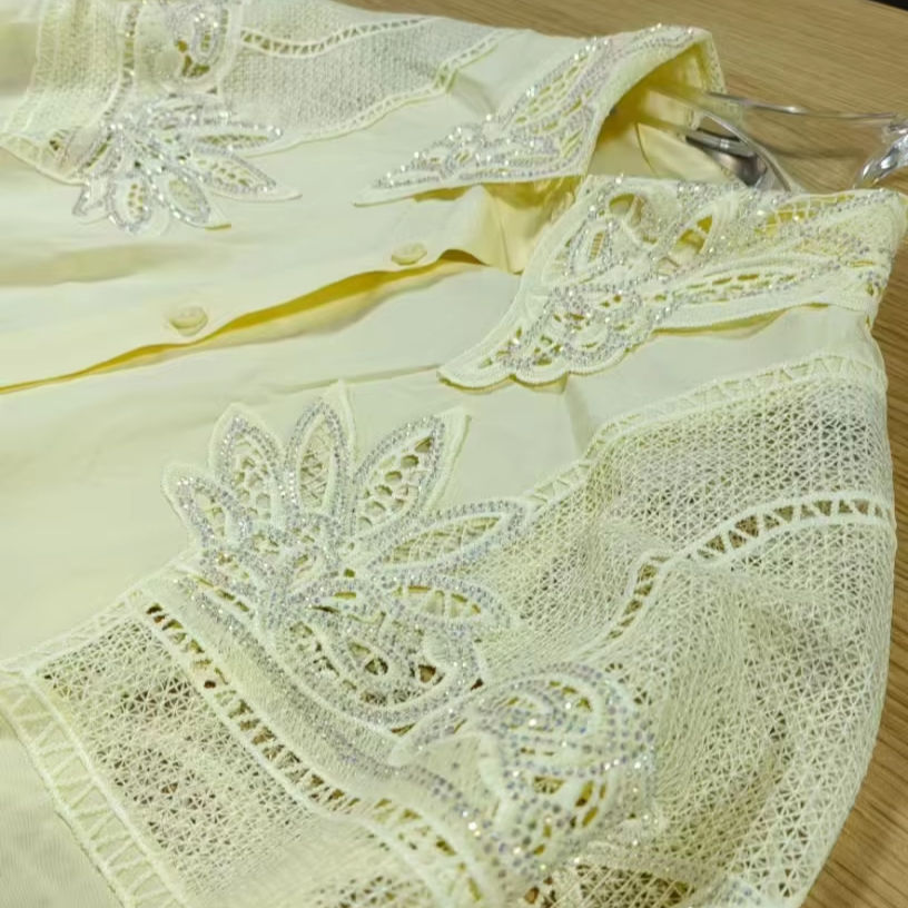 Nuova tendenza 2025 con ricami larghi camicie di cotone Casual camicette da donna a manica lunga maglia gialla Top abbigliamento donna