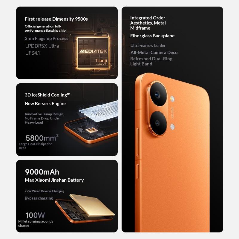 New 2026 Orignal Redmi Turbo 5 Max Smart Phone With Dimensity 9500S AMOLED 120Hz 1.5K Display 9000mAh 100W Charging