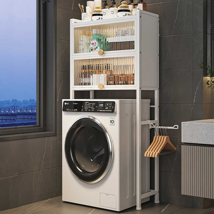 Nuovo Scaffale da Bagno a 3 Ripiani Sopra la Lavatrice con Anta, Organizzatore per Rotoli di Carta e Porta Asciugamani