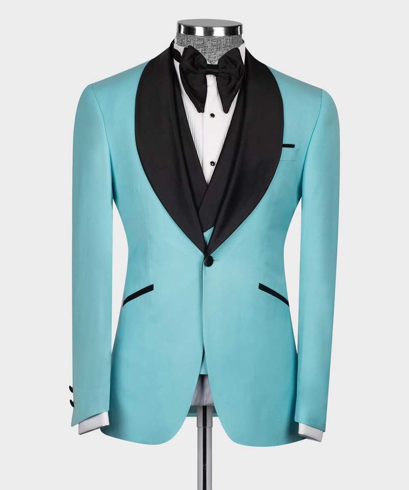 Nuovi 3 pezzi pantaloni Blazer abiti blu con colletto sciallato nero 3 pz gilet di lusso abbigliamento da sposa da uomo