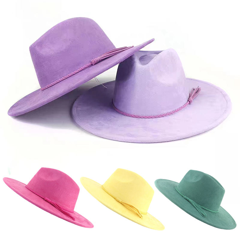 Nuovo Cappello Fedora in Camoscio con Tesa Larga 9,5 cm per Uomo e Donna, Cappello Jazz in Feltro Autunno Inverno, Sombrero, Cappello a Cilindro, Panama