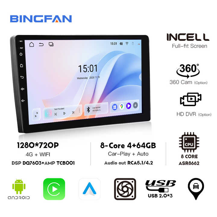 Nuovo Schermo Auto Android 15 da 9 Pollici QLED DSP EQ Stereo BT5.4 WIFI 6 Supporto Carplay Wireless e Android Auto