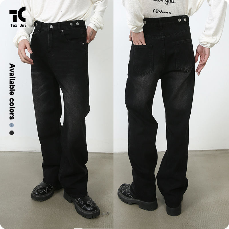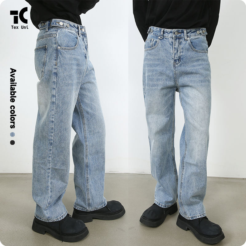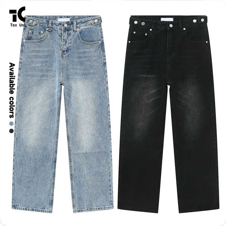 Nuovi Jeans da Uomo Blu Baggy Stile Americano, Pantaloni in Denim a Gamba Dritta e Larga con Vita Regolabile, di Tendenza High Street