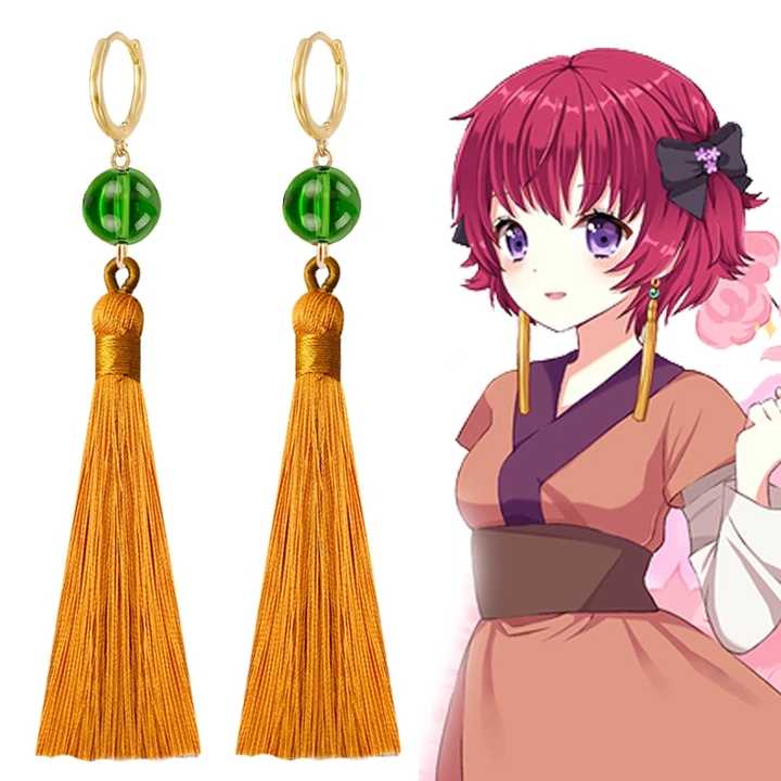 Nuovi Orecchini Anime Akatsuki No Yona, Principessa Yona dell'Alba, Haku con Perline Verdi e Nappine, Clip per Orecchie, Accessori Cosplay per Donne
