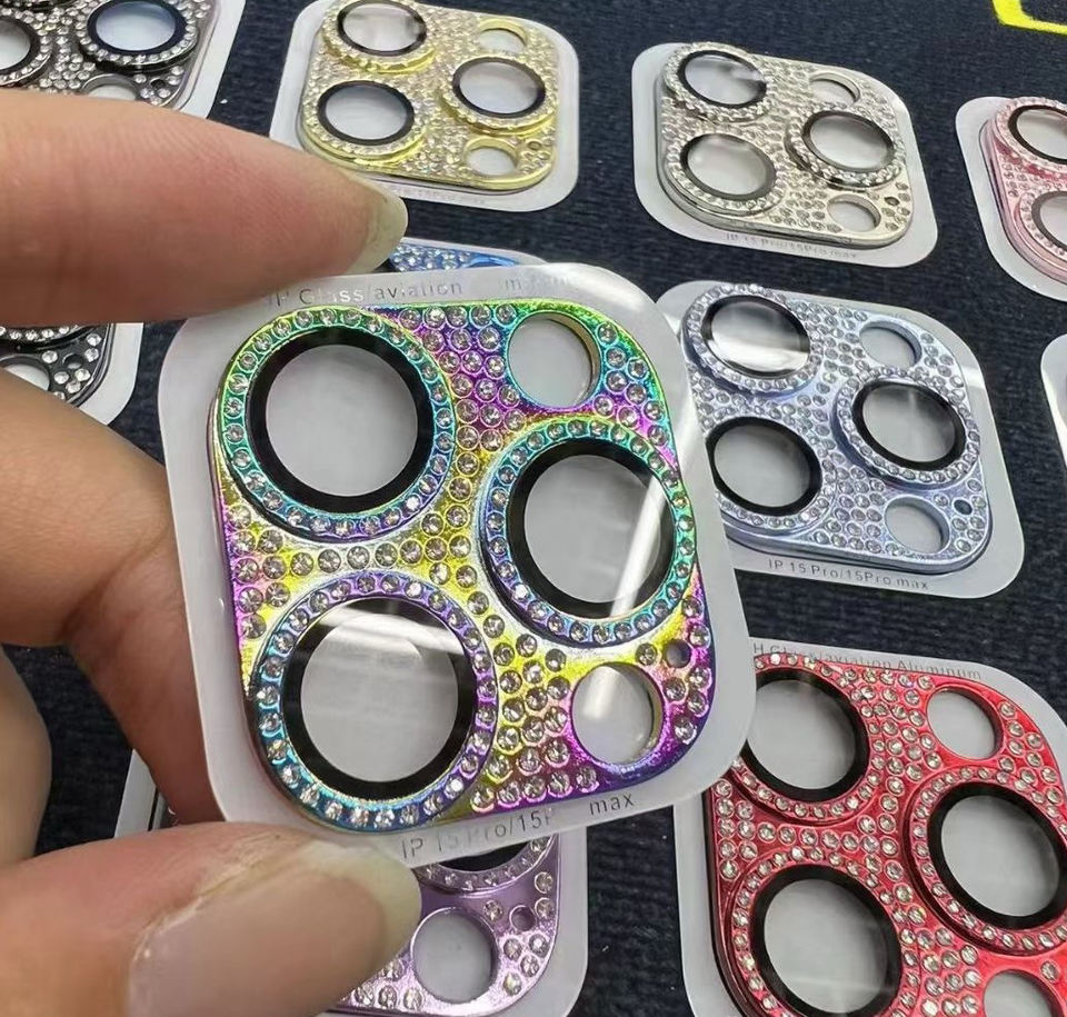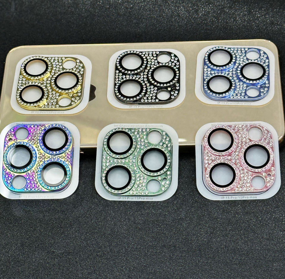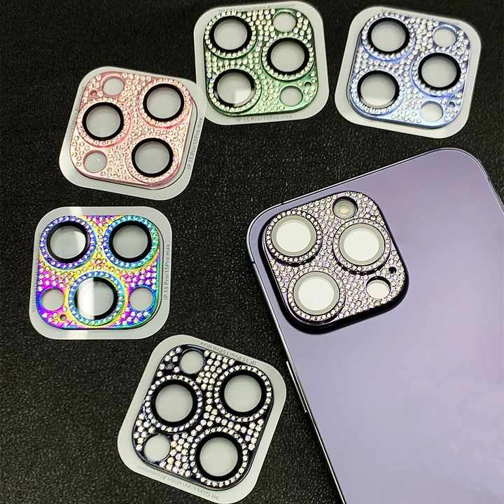 Nuova Protezione per Lenti Fotocamera in Vetro Temperato Anti-Graffio con Glitter Diamantati per iPhone 15 14 13 11 16 Pro Max