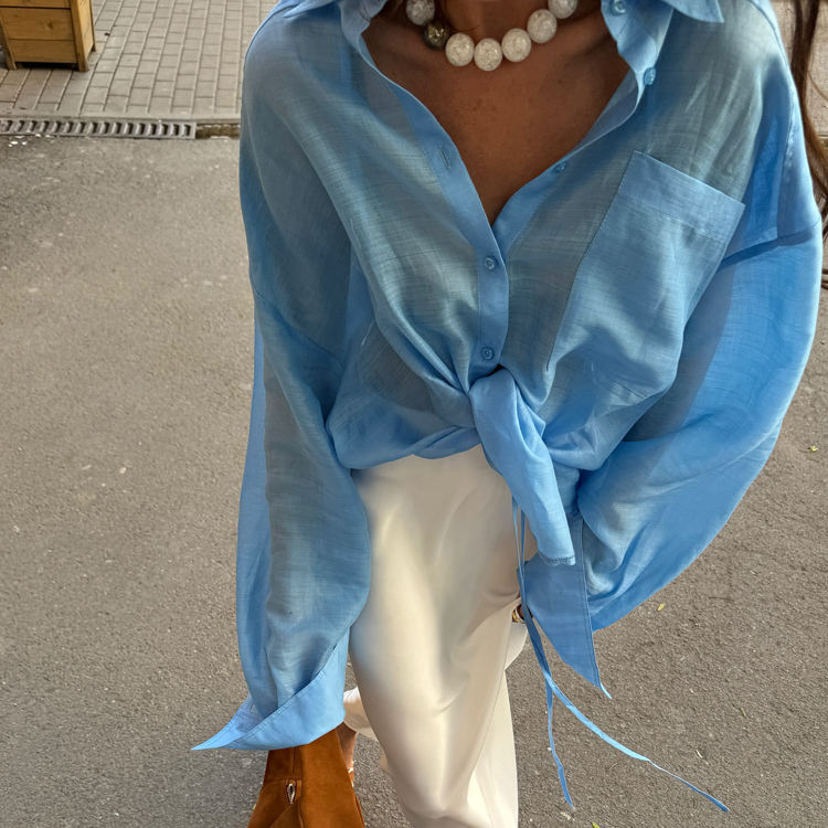 New Arrival 2025 Blue Transparent Women's Clothing Casual Fashionable Shirts Long Sleeve See Through Shirt For Women With Lacing
