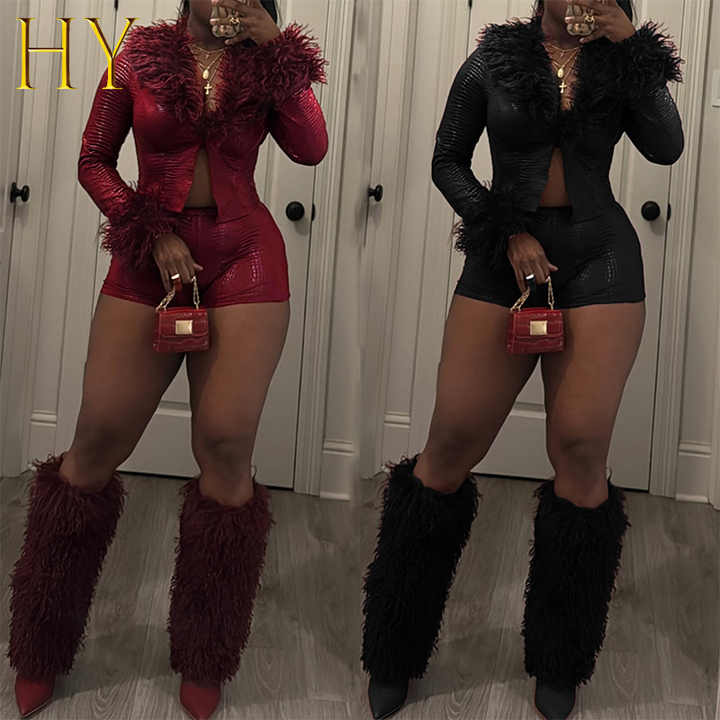 Nuova Collezione Primavera 2026: Set Due Pezzi in Pelle PU con Pelliccia, Giacche Corte Pelose da Donna e Shorts Sexy Abbinati