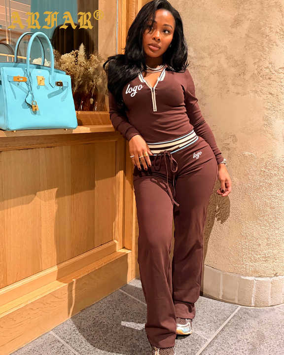 New Arrival 2026 Trending Fashion Women Clothing 2 Piece Set Golf Wear Half Zip Polo Shirt Pants Tall Girl Friendly Lounge Sets