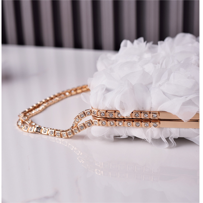 New Arrival 3D Floral Diamond Chains Evening Guess Clutch Women Bags Sehe Fashion