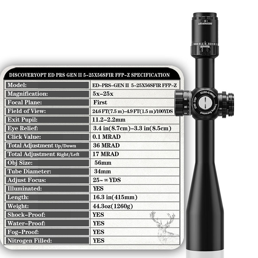 Nuovo Arrivo Cannocchiale 5-25 con Zero Stop FFP Cannocchiale Discovery ED PRS 5-25x56 SFIR FFP