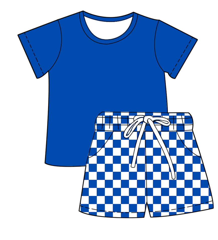ustom Print Kids Checkered Shorts Comfortable Daily Set