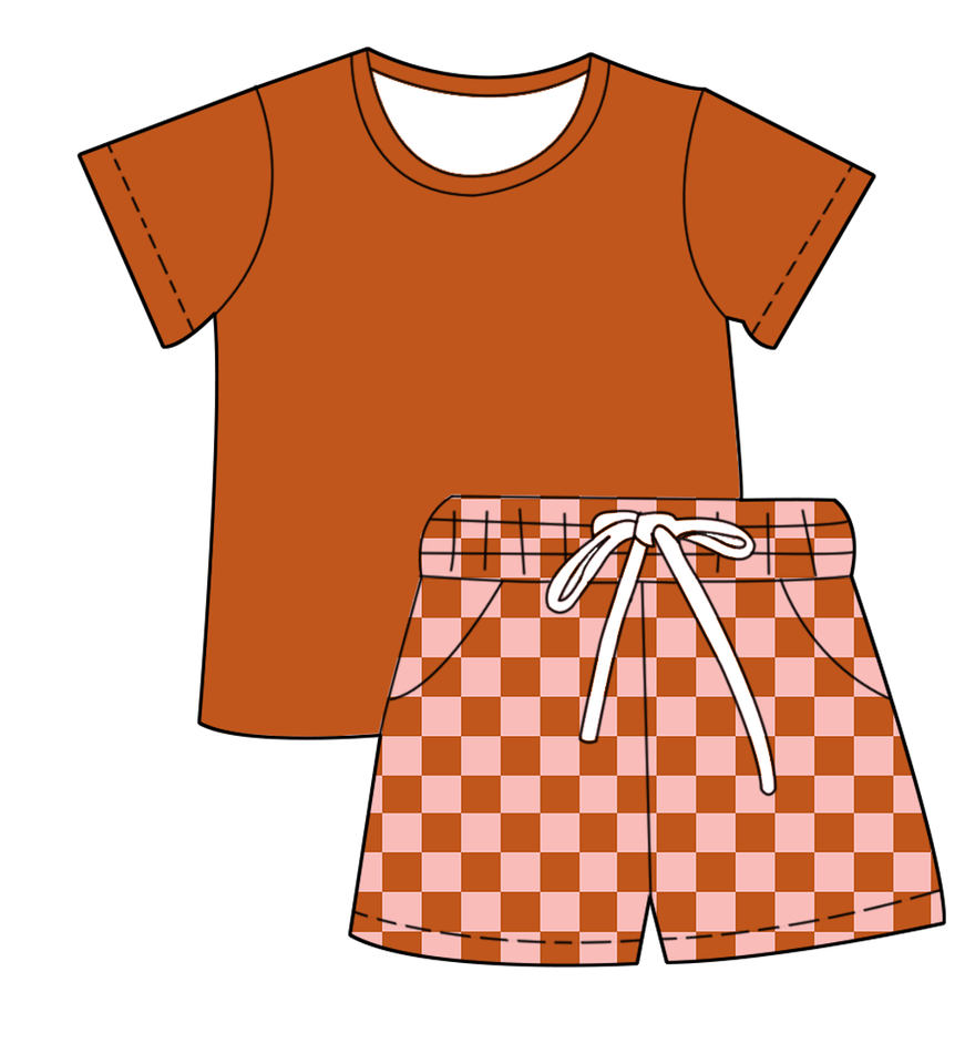 Keywords:ustom Print Kids Checkered Shorts Comfortable Daily Set