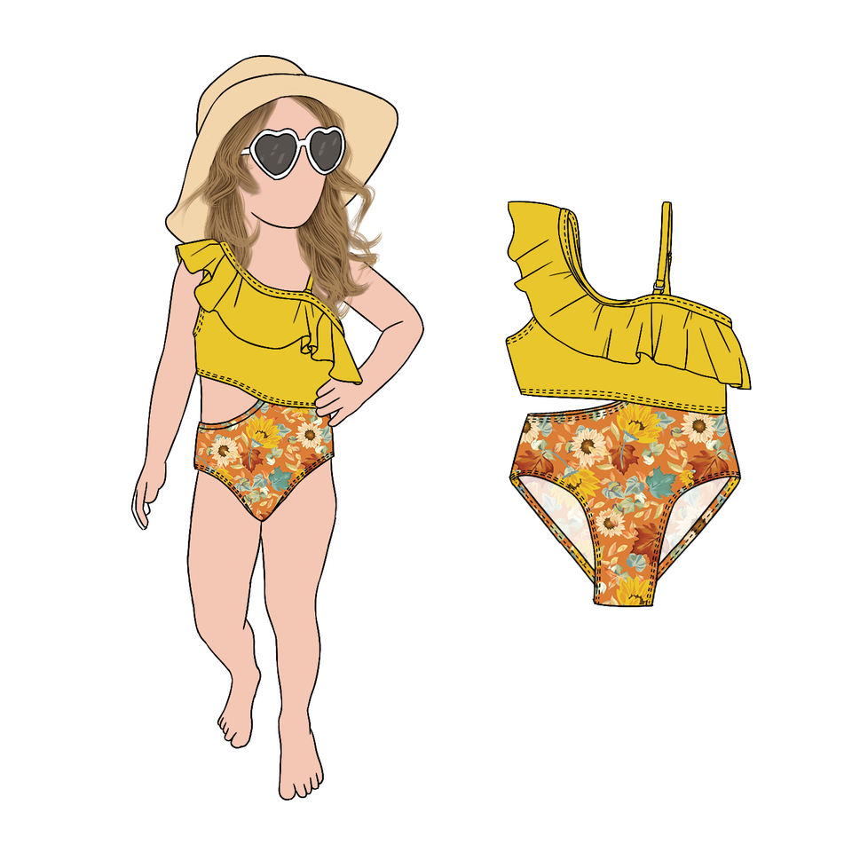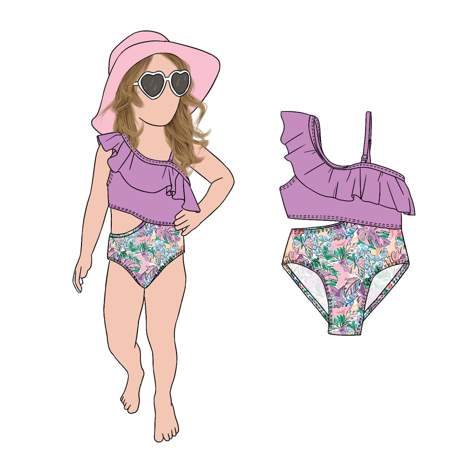 Nuovo arrivo stile bohémien Designer per bambini costume da bagno con Top tinta unita e pantaloncini stampati da bambina Must-Have per le vacanze