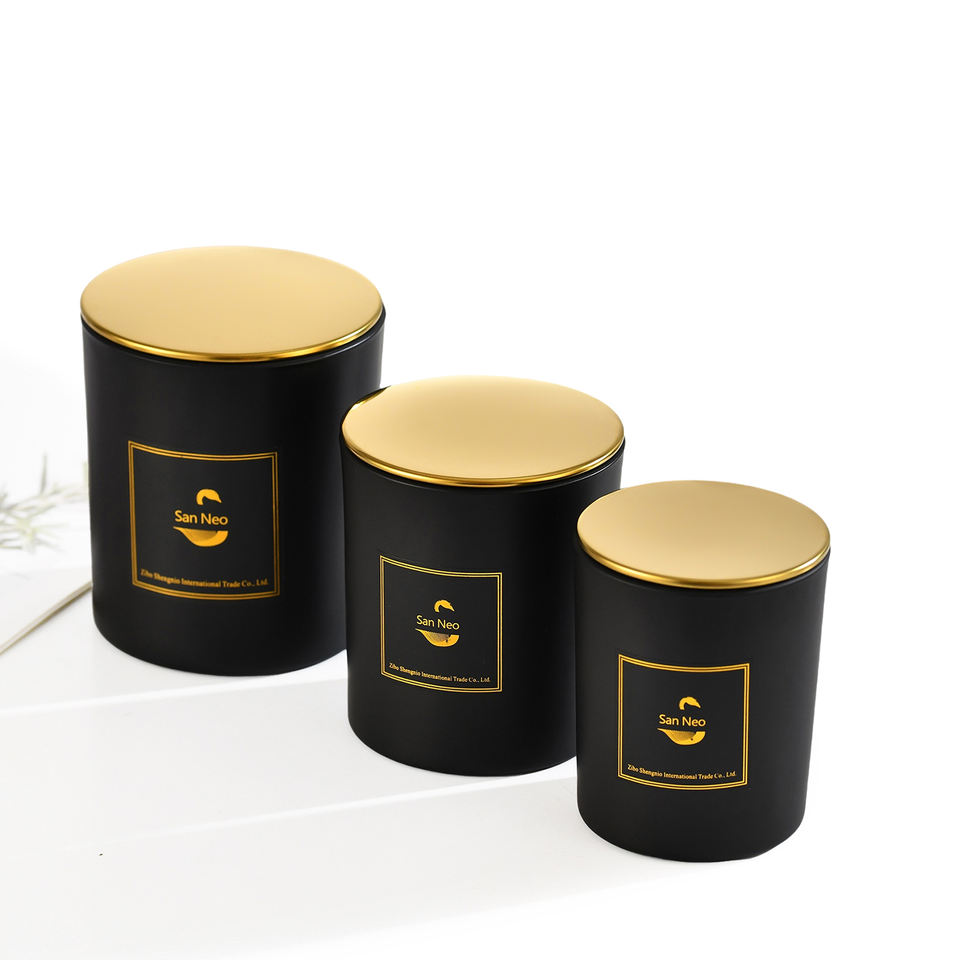 New Arrival Custom 8 Oz 10 Oz 14 Oz Cup Glasses for Candles Black Candle Jar With Lid