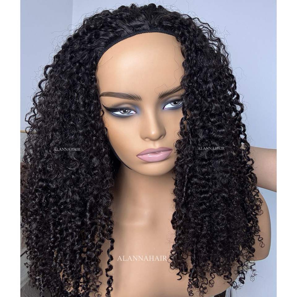 Nuovo arrivo parrucche mezze ricci Afro crespi personalizzate da donna capelli umani grezzi vergini 200% densità naturale Afro riccioli mezza parrucca