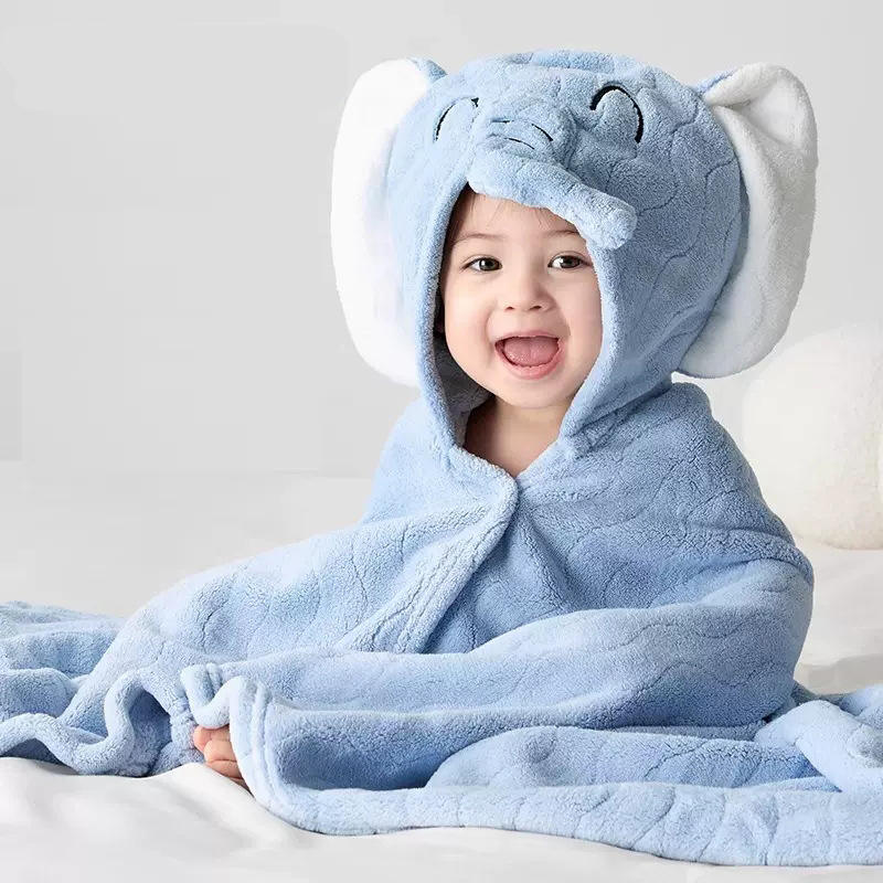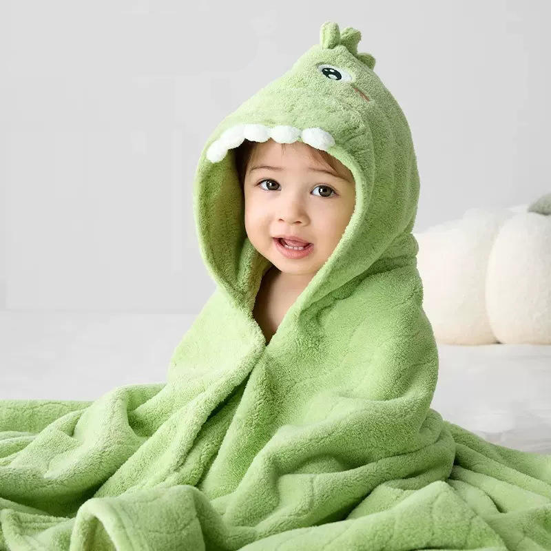 New Arrival Cute Animal Design Bathrobe Wrap for Babies Soft Coral Fleece Hooded Kids Towel Wholesale