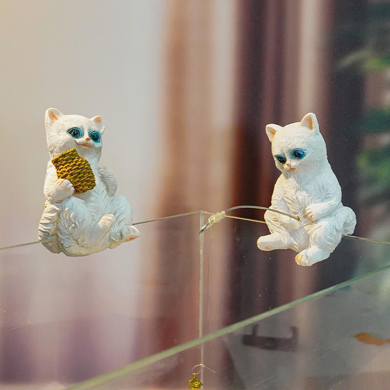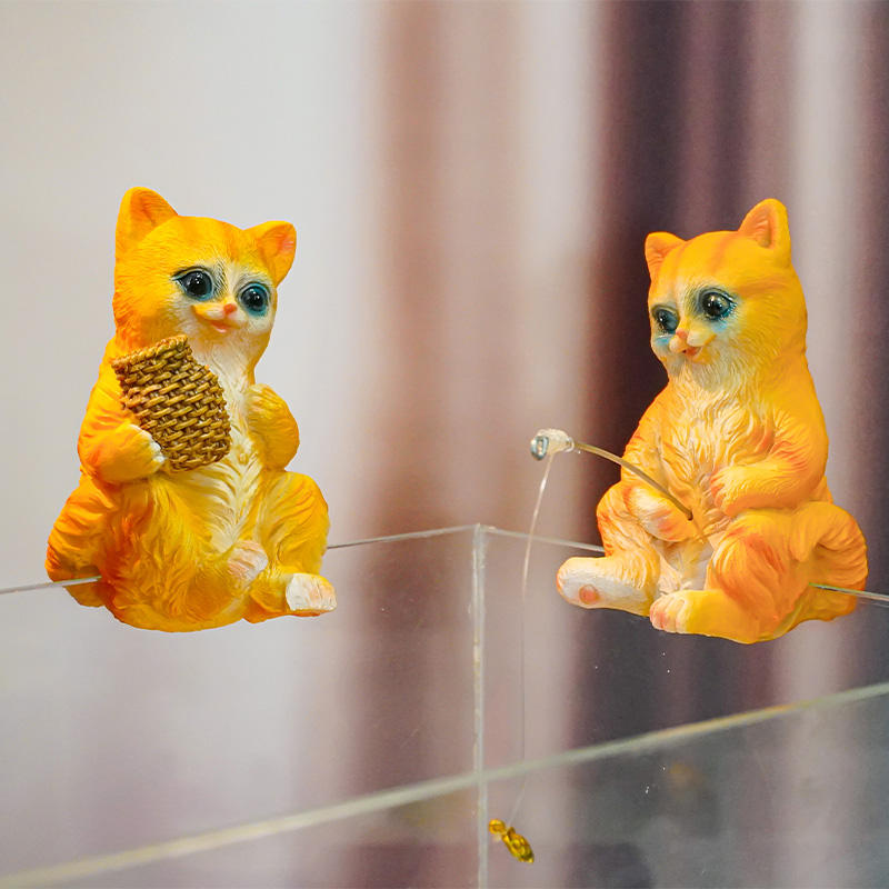 New Arrival Cute Resin Fishing Cat Aquarium Decoration Fish Tank Decoration Pendant