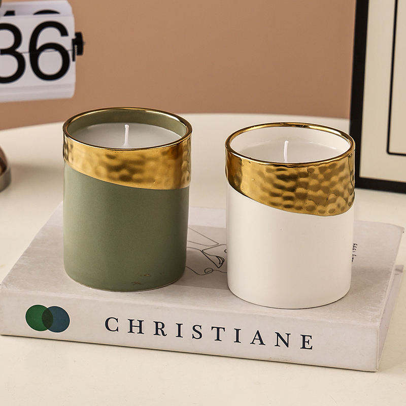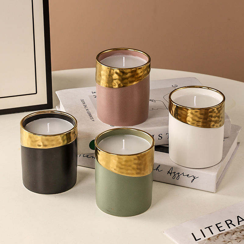Barattolo di candela in ceramica cilindrico di nuovo arrivo, vaso di lusso in oro vuoto per decorazioni per la casa, barattolo di candela opaco con decorazione con coperchi