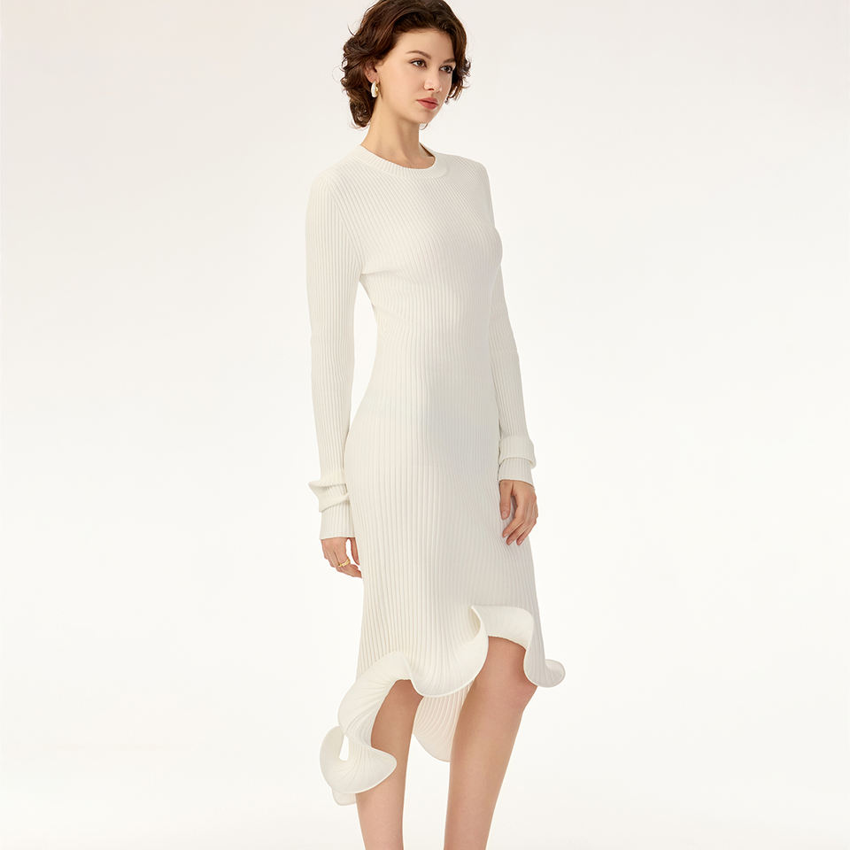 Nuovo arrivo elegante abito in Rayon abito scultoreo con orlo a coste elegante elegante e grazioso abito maglione lavorato a maglia