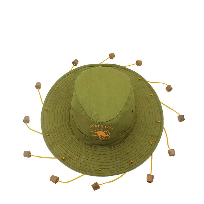 Nuovo arrivo pescatore cappello a secchiello con sughero in legno ciondolo Aussie abito di sughero cappello Uv protezione solare cappelli a tesa larga