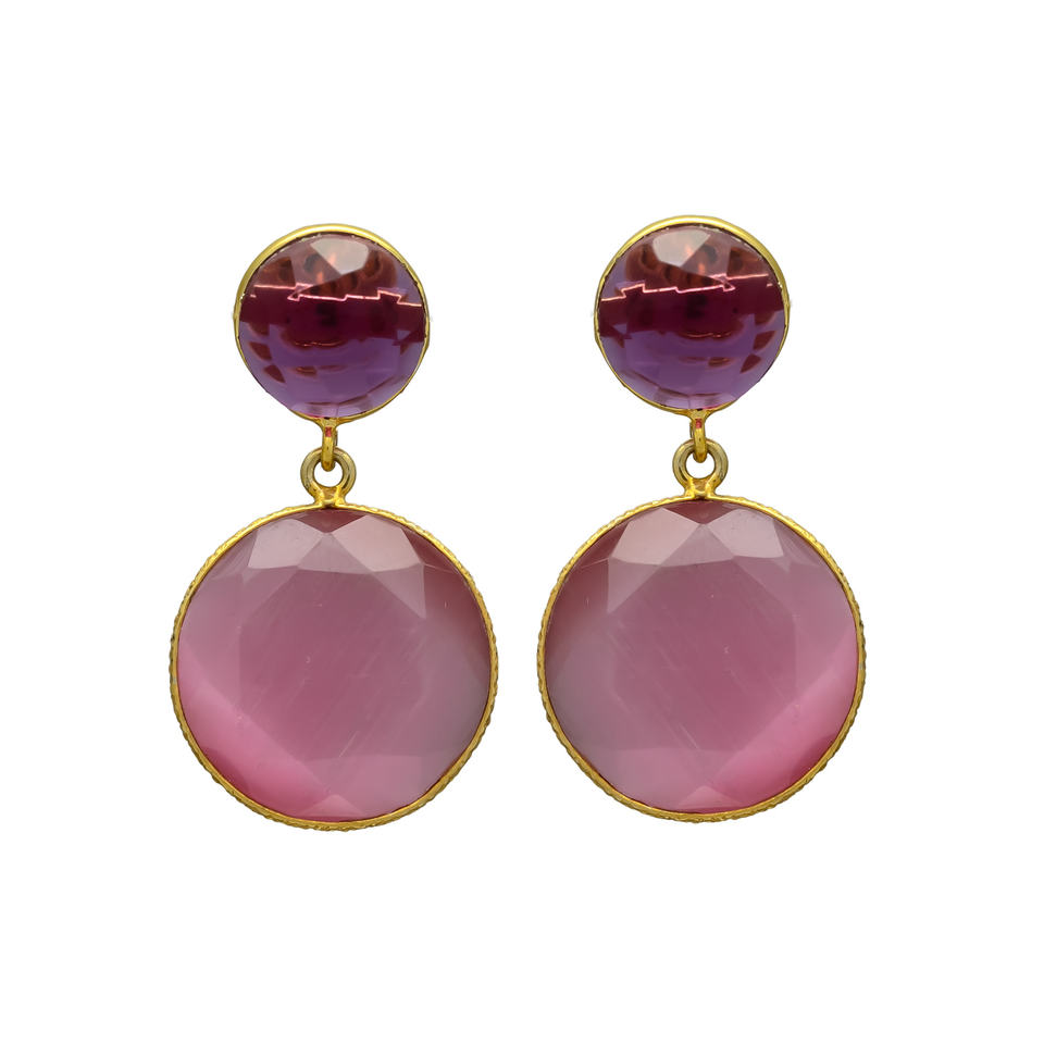Orecchini pendenti dal design unico placcato oro nuovo arrivo con orecchini in ottone con pietre preziose rosa