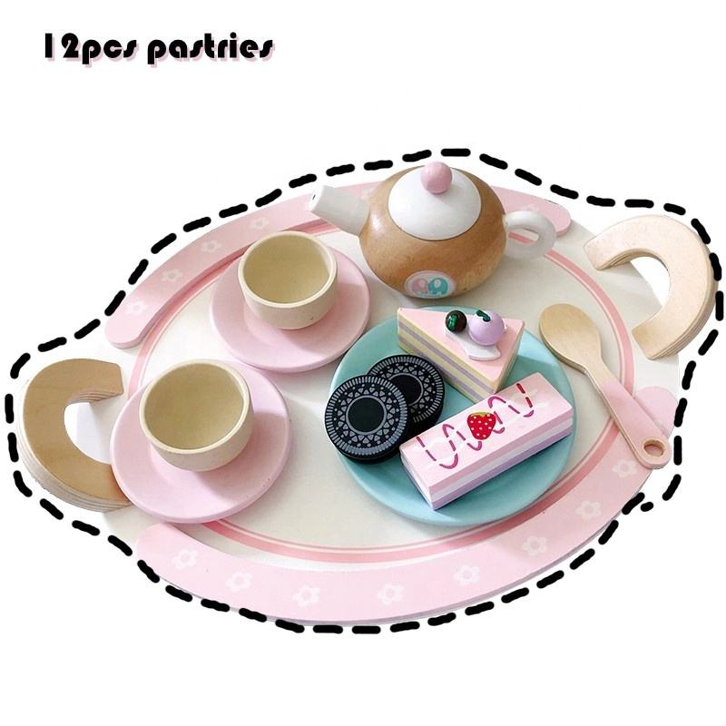 Nuovo arrivo felice giocattoli da cucina educativo per la cottura del legno Set da tè con vassoio per i bambini