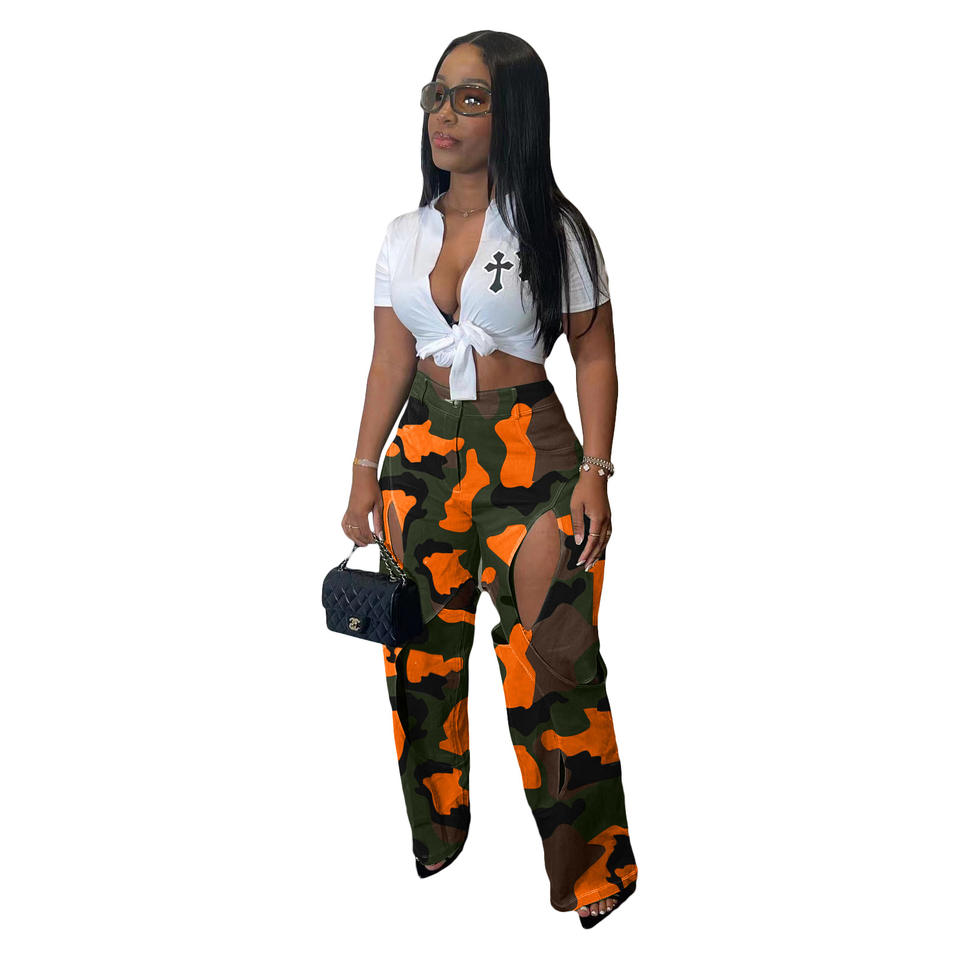 Nuovo arrivo a vita alta HD stampato pantaloni da lavoro con foro trasversale a gamba dritta traspirante estivo Streetwear Autumns Cargo lavabile