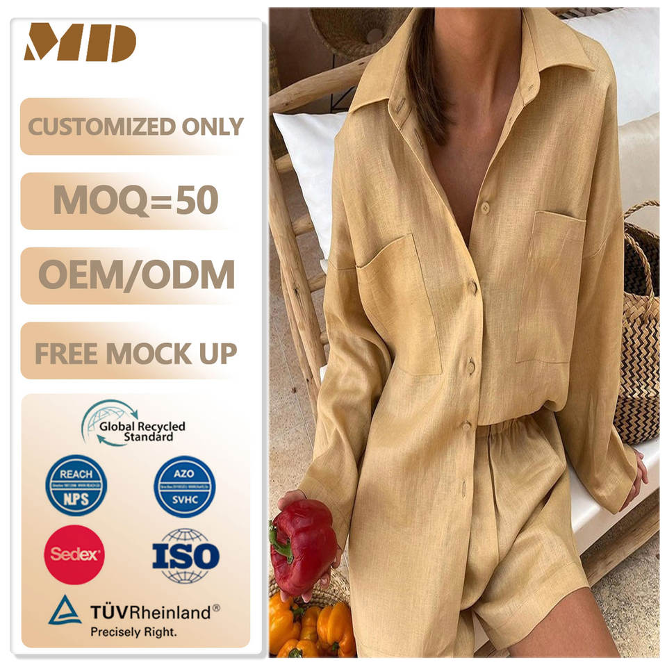 Nuovo arrivo vendita calda di alta qualità camicia di lino da donna e pantaloncini set per le donne due pezzi 2025 abbigliamento Casual lino