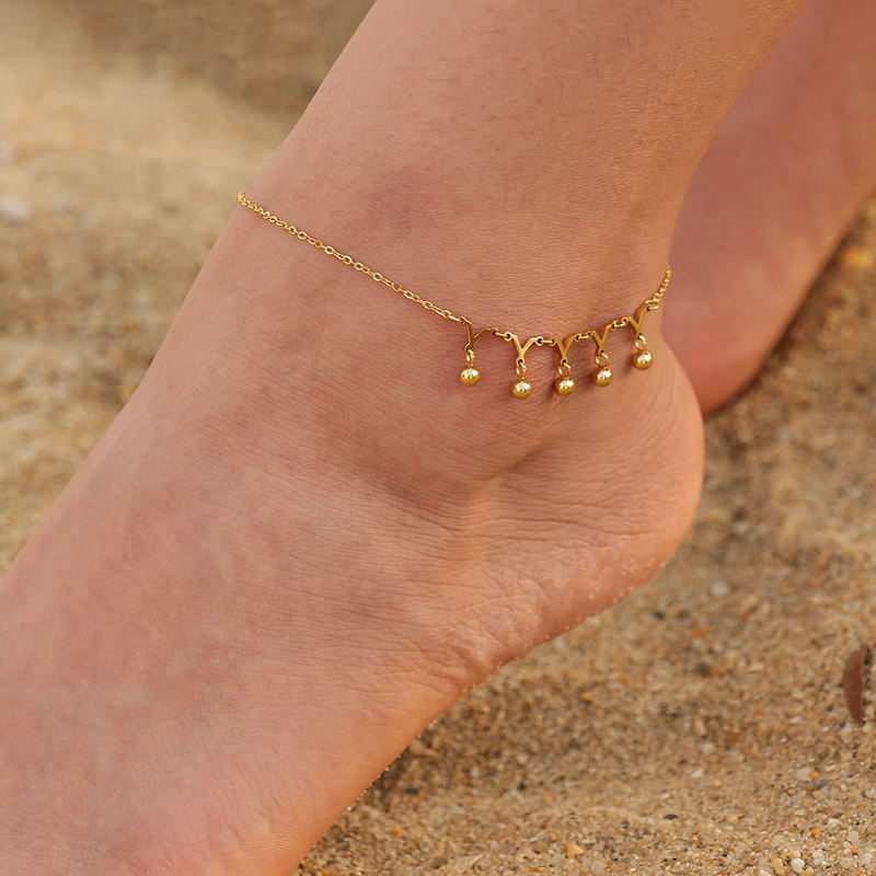 Nuova Collezione Cavigliera a Y con Nappine Placcata in Oro 18K per Donne, Catena in Acciaio Inossidabile con Piccolo Ciondolo a Sfera