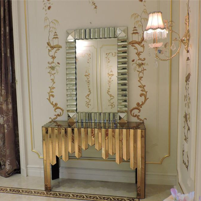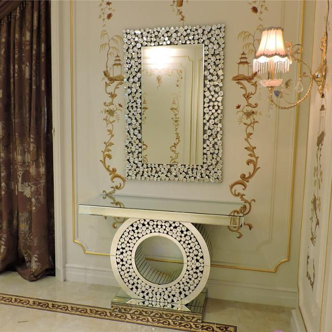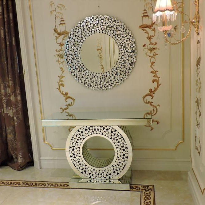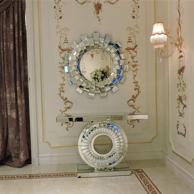 New Arrival Modern 3D Mirrored Console Table with Wall Mirror Set Living Room Furniture for Home Decor