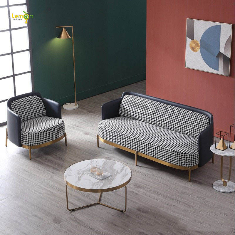 Nome:Set divano in tessuto e pelle per hotel boutique