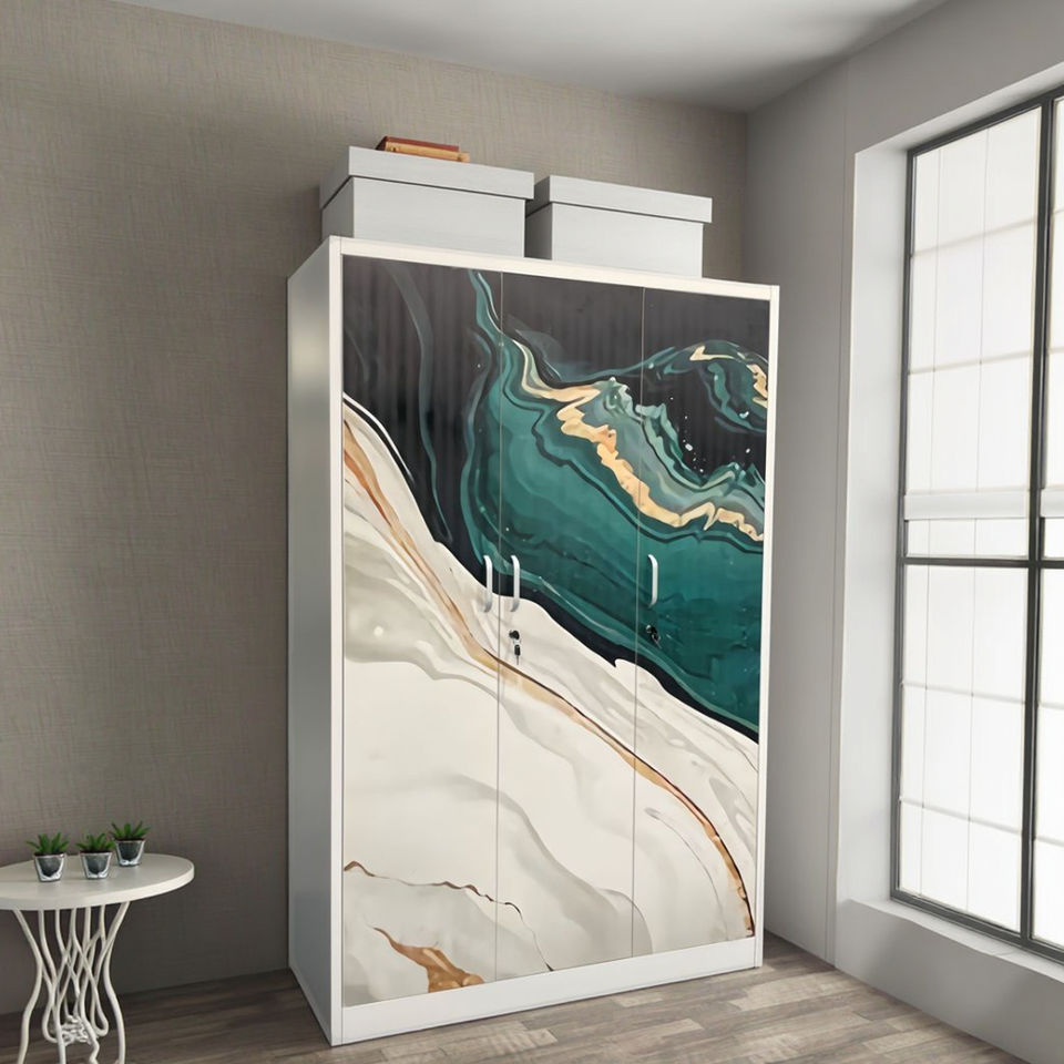 New Arrival Modern Steel Printed Wardrobe with Multi-Door Cabinets Mirror Storage for Apartment Bedroom-Durable Home Furniture