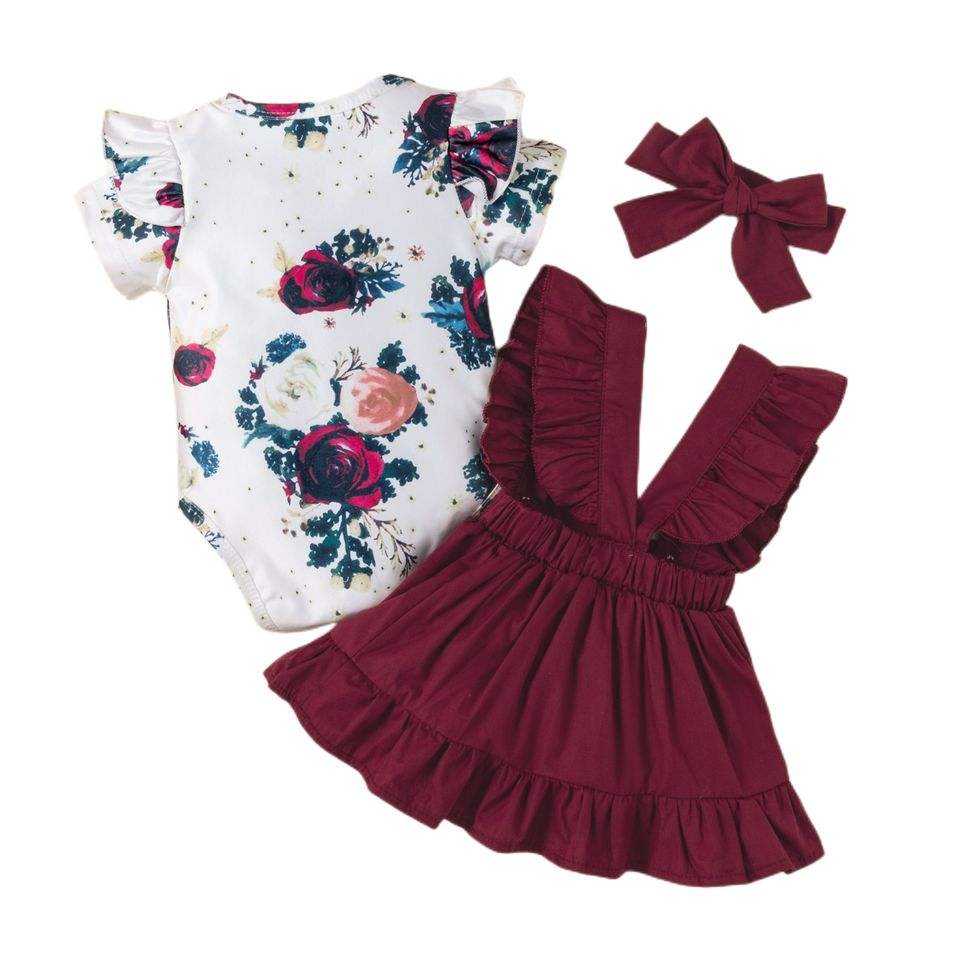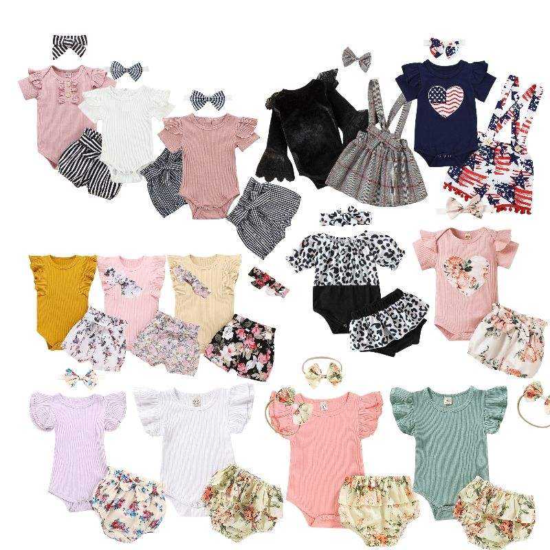 Nuovo Arrivo Completo per Neonata 3 Pezzi con Pagliaccetto a Maniche Lunghe o Corte con Volant Pantaloni e Vestito