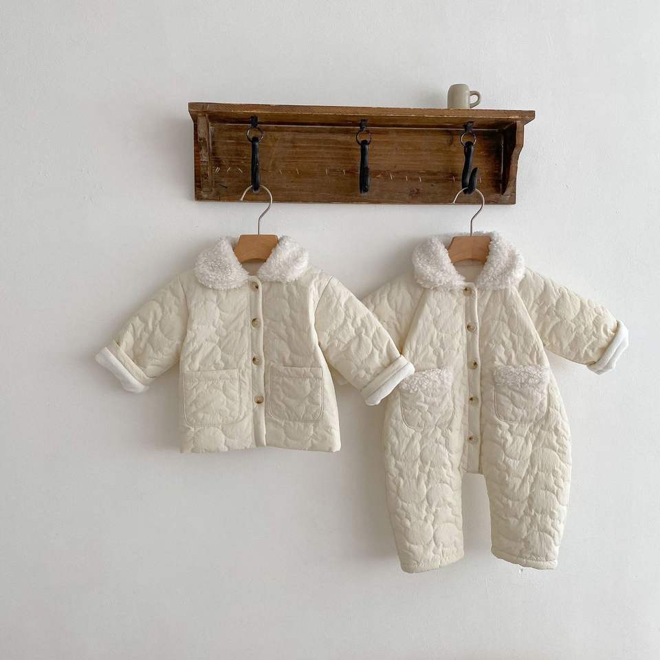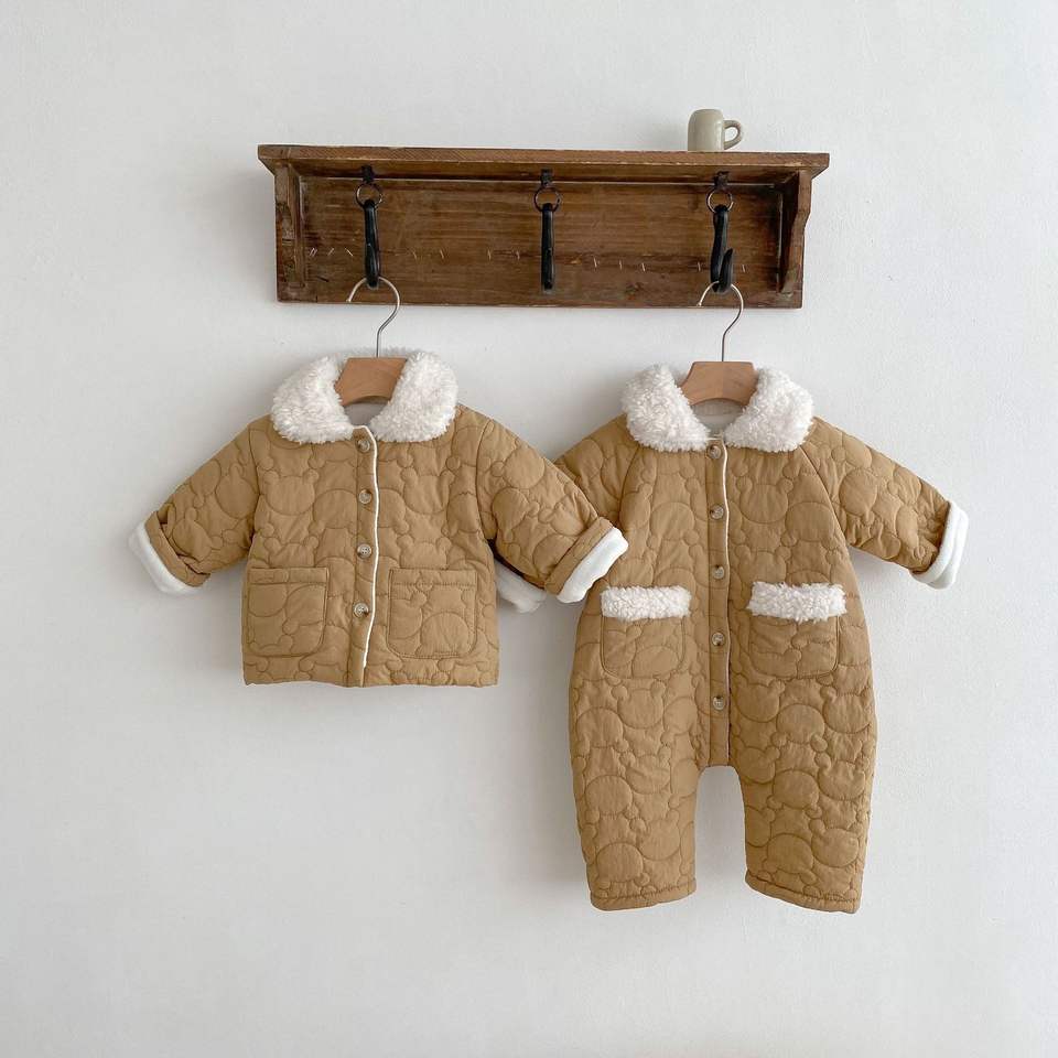 New Arrival Newborn Baby Winter Clothing Solid Color Warm Fleeced Infant Rompers Baby Girls Boys Winter Coat Jacket