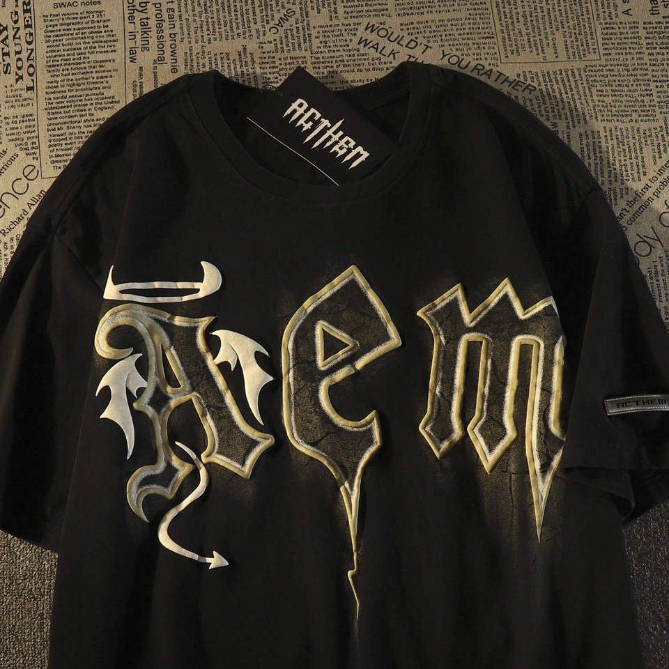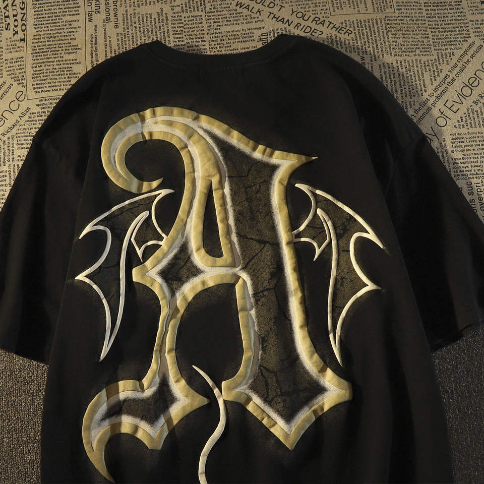 Nuova T-Shirt Oversize con Stampa 3D in Rilievo, Streetwear Invernale, Logo Personalizzato, Maglietta in Cotone con Stampa in Rilievo per Uomo