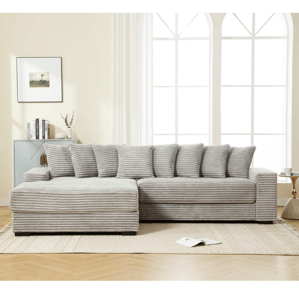 Nuovo Arrivo Divano Angolare a L Oversize in Corduroy con Chaise Longue Sinistra e Braccioli, Otto Posti