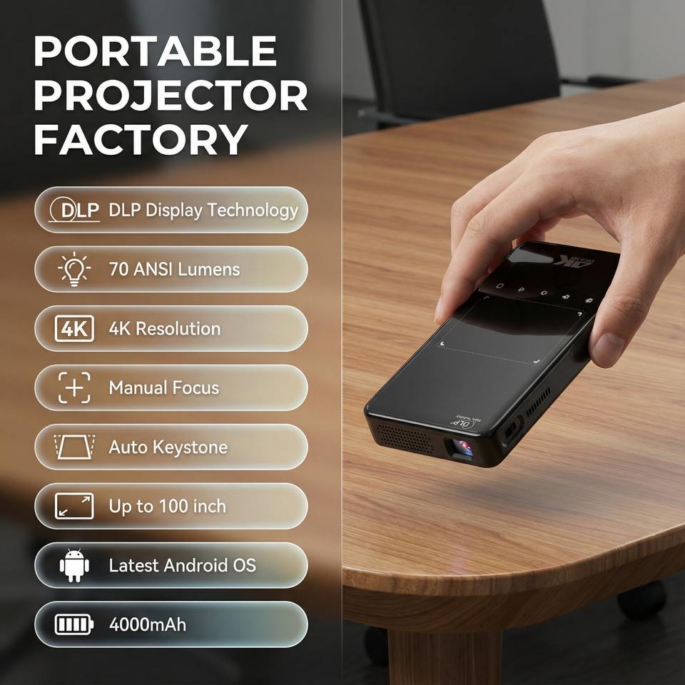 Nuovo Arrivo: Proiettore DLP Portatile Smart 4K Mini Android TV con Batteria Integrata, WiFi, 2GB RAM, 32GB per Uso Aziendale