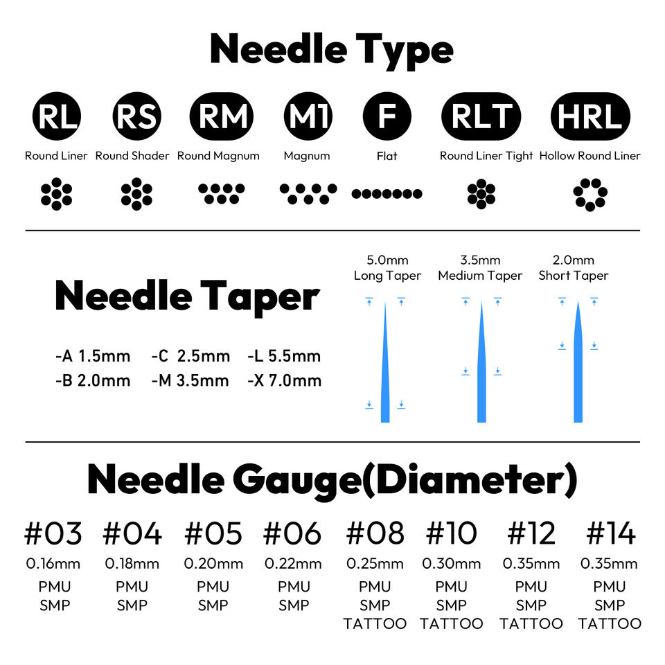 #06, #08, #10, #12, 0.35mm, 0.25mm, 0.30mmNumero dell'ago
