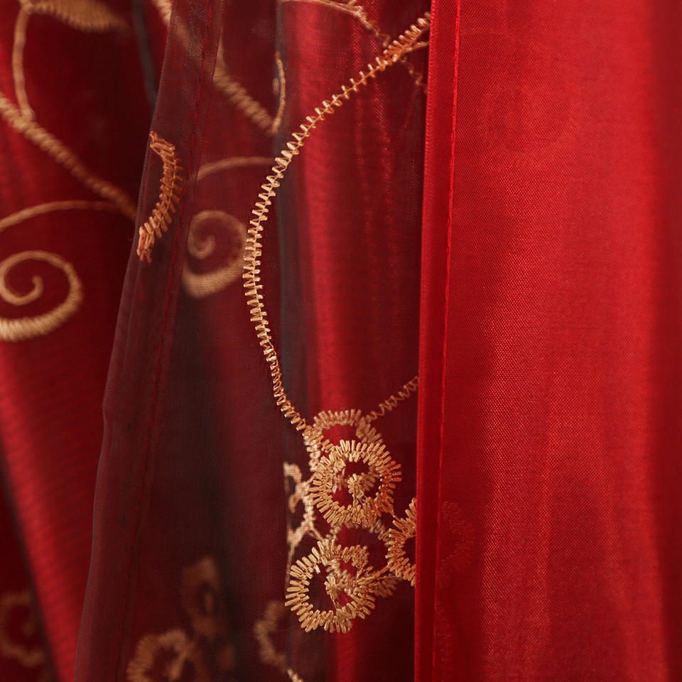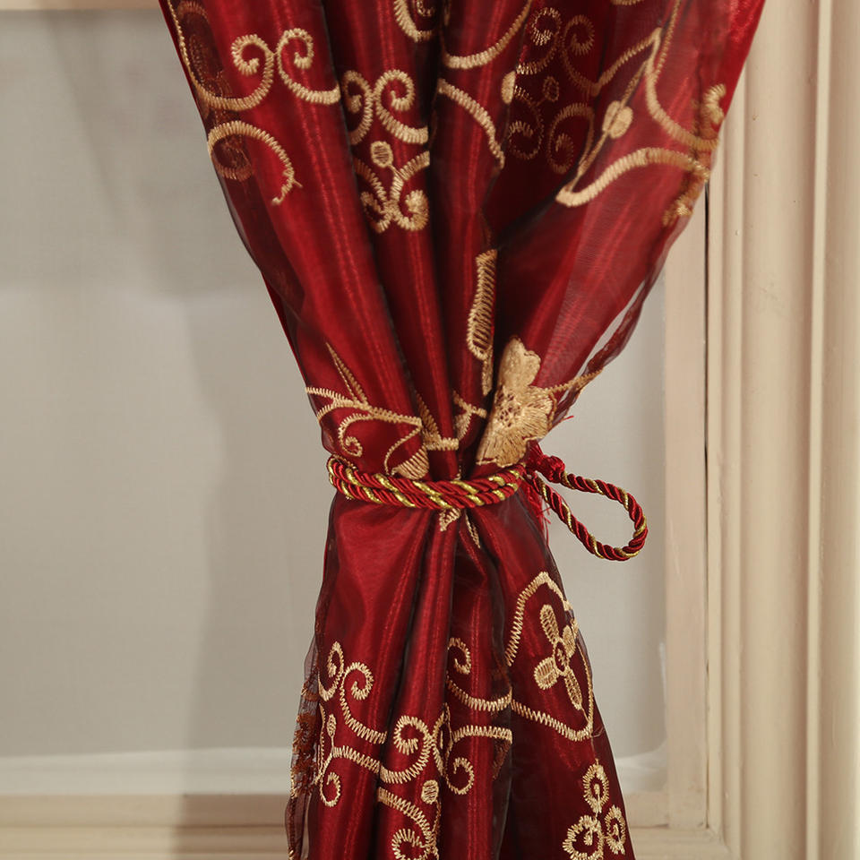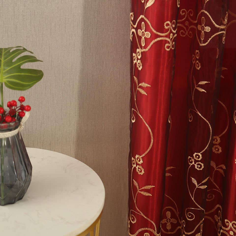 New Arrival Red Burgundy Blackout Embroidery Linen Blend Room Curtains