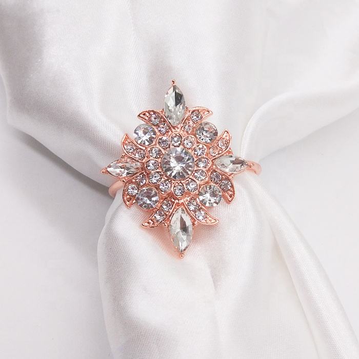 Nuovo arrivo oro rosa strass diamante portatovagliolo per matrimonio e festa decorazione della tavola