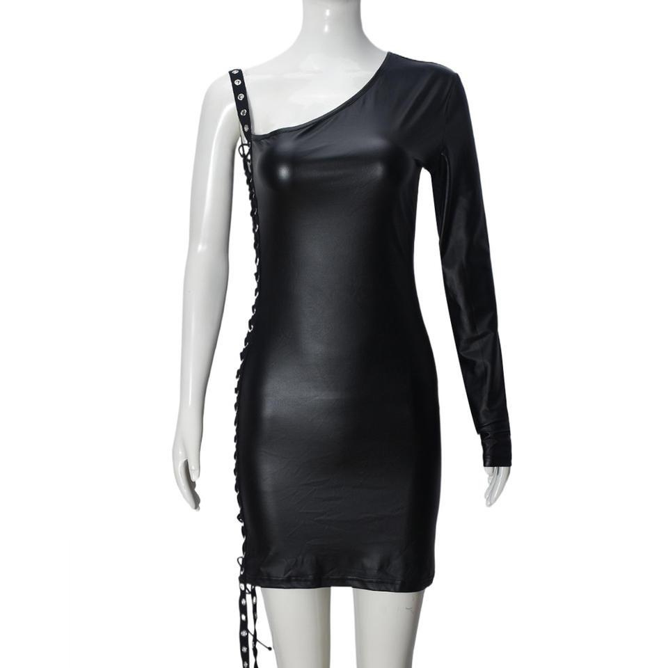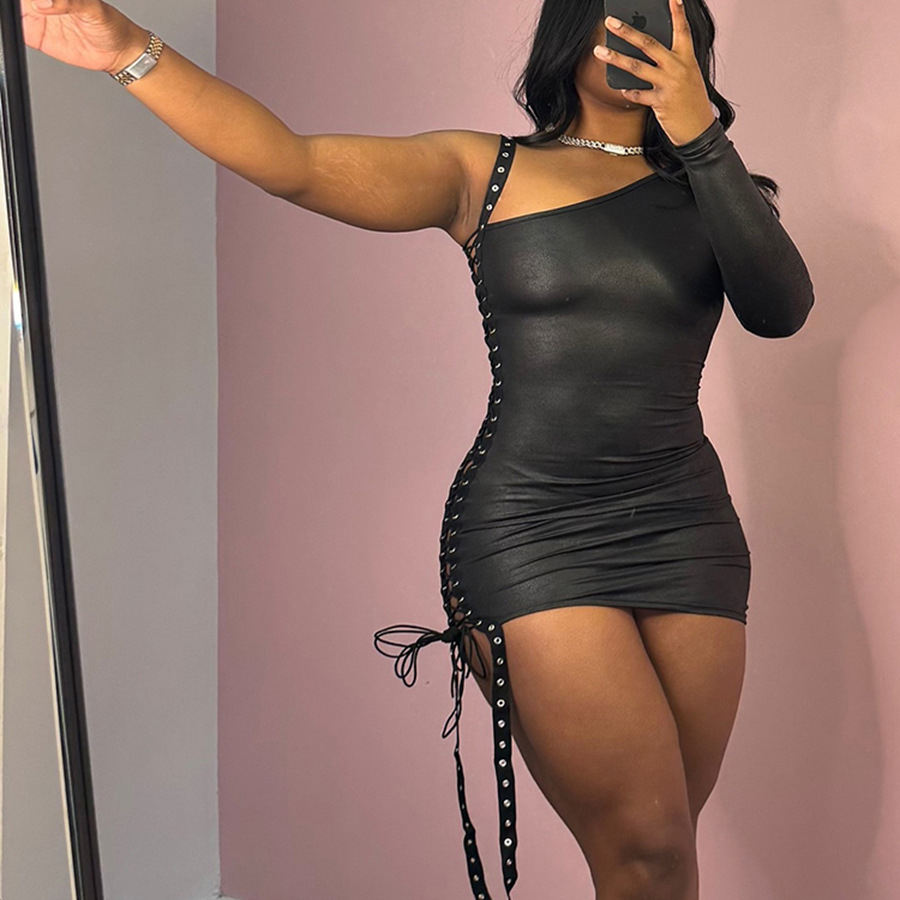 Nuovo Arrivo: Mini Abito Sexy Nero con Manica Lunga Monospalla e Cinturino Aderente, Moda Femminile